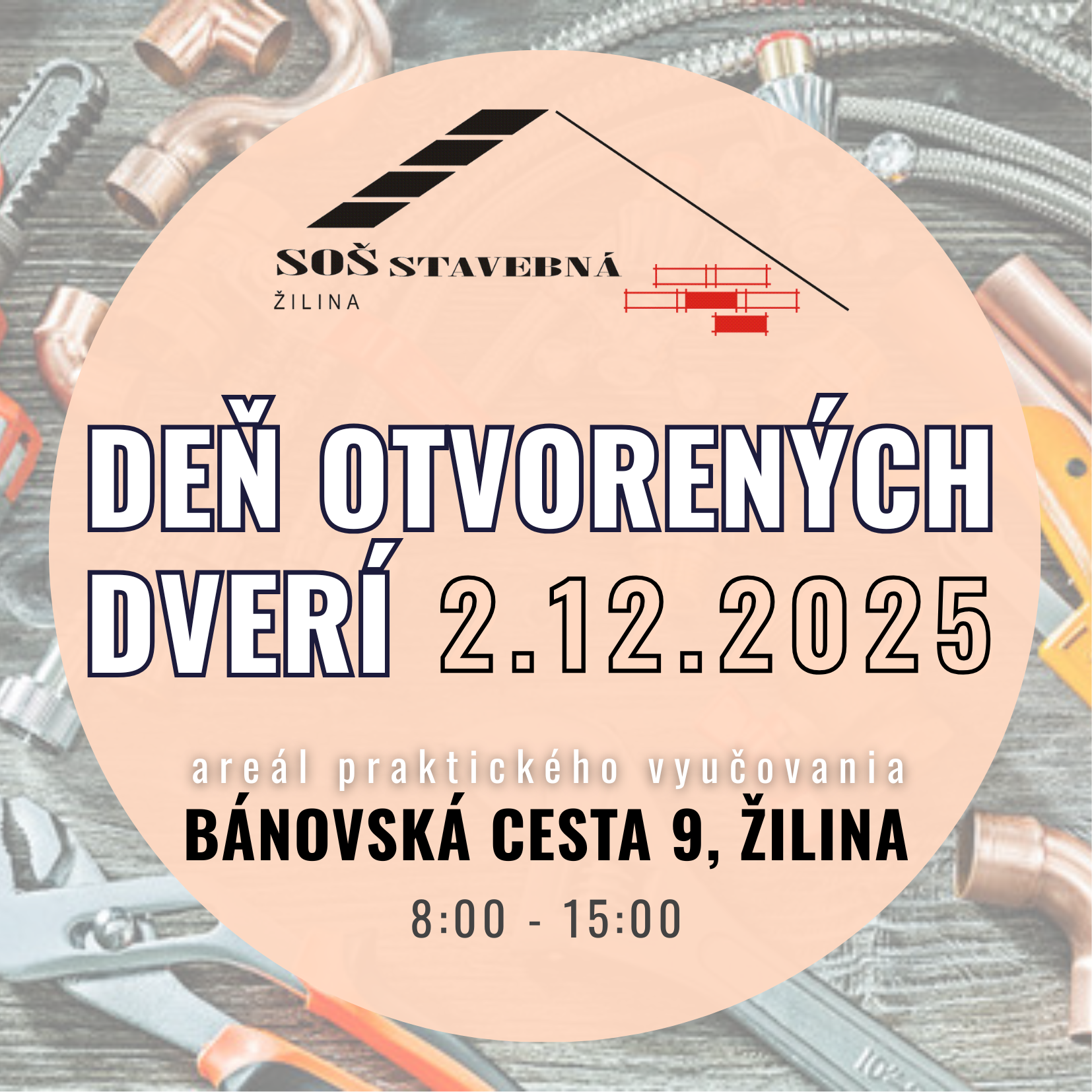pozývame Vás na deň otvorených dverí, ktorý sa bude konať dňa 03.10.2025 (piatok) od 11.00 do 18.00 hod. v priestoroch Strednej odbornej školy v Žiline, Rosinská 3126/2, Žilina.
